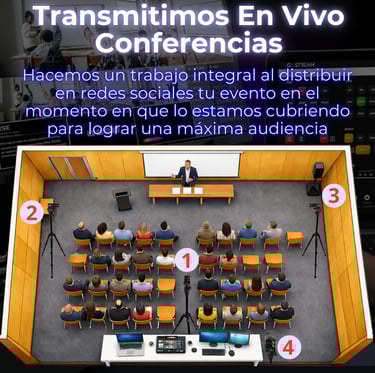 🌐 Combinamos la transmisión en vivo 🔴 con la promoción en redes sociales de tu evento, logrando una interacción total con el público en plena evento. Hacemos transmisión "En sitio" 📍 para que captes más público y tus seguidores no se pierdan ningún detalle. ¡Todo en tiempo real! ⏱️